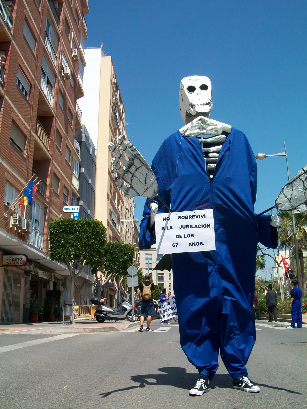 La manifestación transcurrió sin ningún tipo de incidente bajo el color rojo y negro, los lemas que se podían leer en las pancartas (”No lo han entendido, no se han enterado, ¡qué estamos despedidxs!, ¡qué estamos explotadxs!”), el grito de una multitud de consignas y la presencia del un títere gigante que nos vaticina el futuro que nos ofrece la reforma laboral o de pensiones a lxs trabajadorxs ante la mirada sorprendida y atenta de los viandantes.