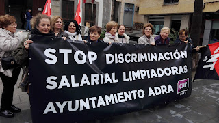La central anarcosindicalista CNT ha vuelto a señalar durante la jornada de huelga general feminista convocada este 8 de Marzo, al Ayuntamiento de Adra al que califica como campeón de la discriminación salarial por cuestión de género. No es un galardón injustificado, el consistorio abderitano ya tiene una sentencia por este motivo, concretamente por discriminación salarial indirecta por cuestión de género que afecta a las limpiadoras municipales. Una sentencia, en primera instancia, que condenó al ayuntamiento a indemnizarlas con 6.251 € y a subirles el sueldo al quedar acreditado que las limpiadoras municipales perciben unos 80 euros menos en comparación con el personal laboral masculino de la plantilla que está adscrito al mismo grupo y desempeñando unas funciones profesionales análogas.