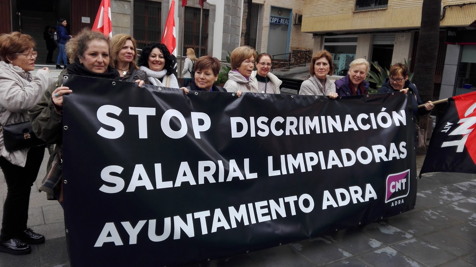 La central anarcosindicalista CNT ha vuelto a señalar durante la jornada de huelga general feminista convocada este 8 de Marzo, al Ayuntamiento de Adra al que califica como campeón de la discriminación salarial por cuestión de género. No es un galardón injustificado, el consistorio abderitano ya tiene una sentencia por este motivo, concretamente por discriminación salarial indirecta por cuestión de género que afecta a las limpiadoras municipales. Una sentencia, en primera instancia, que condenó al ayuntamiento a indemnizarlas con 6.251 € y a subirles el sueldo al quedar acreditado que las limpiadoras municipales perciben unos 80 euros menos en comparación con el personal laboral masculino de la plantilla que está adscrito al mismo grupo y desempeñando unas funciones profesionales análogas.