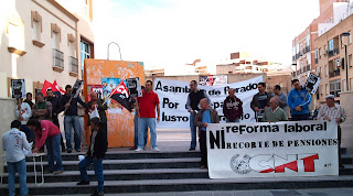 El pasado 22 de abril, cerca de 30 personas se concentraron en la Plaza Enrique Sierra Valenzuela de Adra, convocadas por la Federación Local de Sindicatos de la CNT en protesta por la inminente reforma laboral que está girando hacia el abaratamiento del despido y el recorte de pensiones. Esta concentración contó también con la participación de la Asamblea de Parados de Adra impulsada por la central anarcosindicalista que recogieron firmas para apoyar las reivindicaciones que en materia de empleo han solicitado al Ayuntamiento abderitano.